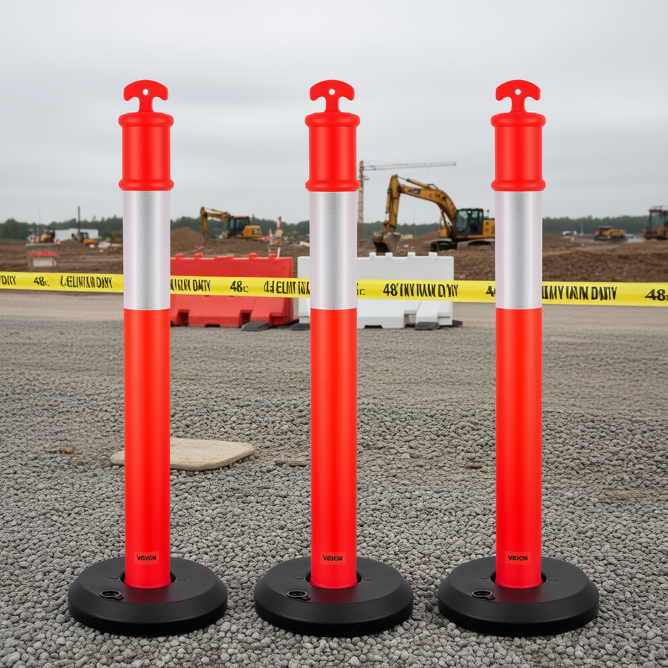 Poteaux de délimitation de circulation Vevor, 48 pouces, base réfléchissante remplissable, cônes de sécurité pour chantier