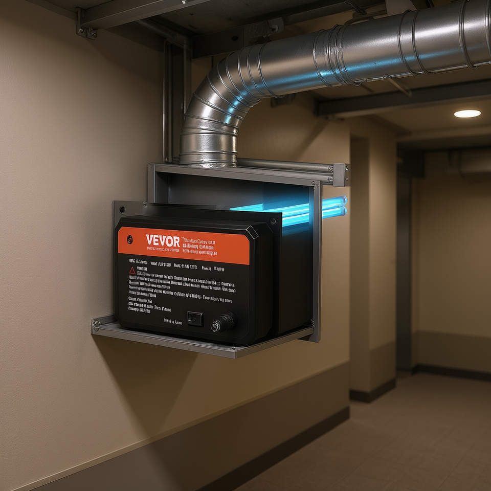 Purificateur d'air UV Vevor à installer dans les conduits, 36W, 16 pouces, pour systèmes de climatisation, mini-installation, ionique électrique, pour hôtels et camping-cars