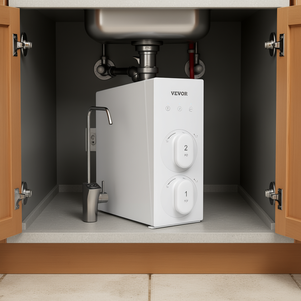 Système de filtration d'eau par osmose inverse Vevor sous évier, 800 GPD, 8 étapes, sans réservoir, en acier inoxydable