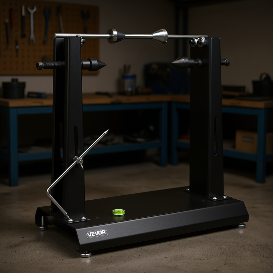 Équilibreuse de roues Vevor, capacité 88,2 lb, support de centrage réglable 35 pouces pour l'alignement des roues de moto et de vélo