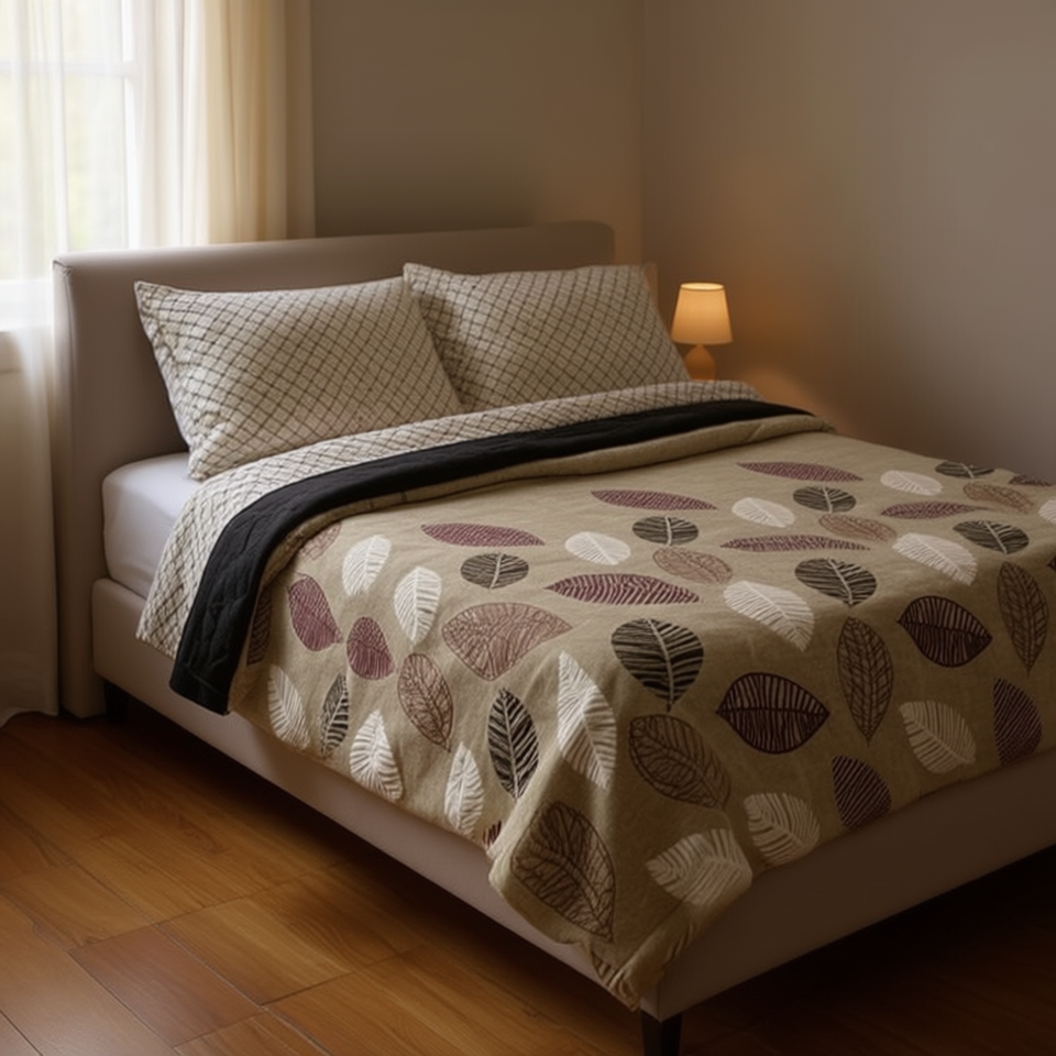 Couverture de lit rectangulaire Vianney à motif feuilles, en lin et coton, style moderne, pour usage individuel en hiver