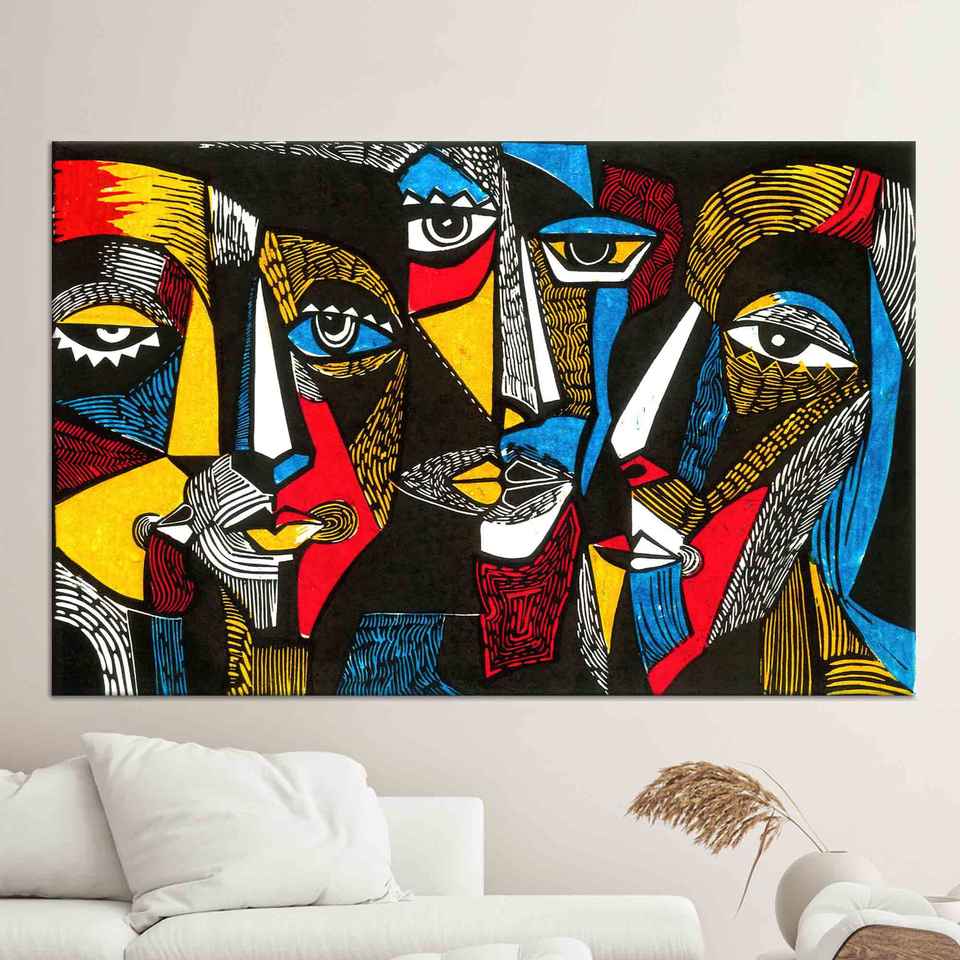 Impression sur toile afrocentrique vibrante - Art des visages africains colorés, toile encollée