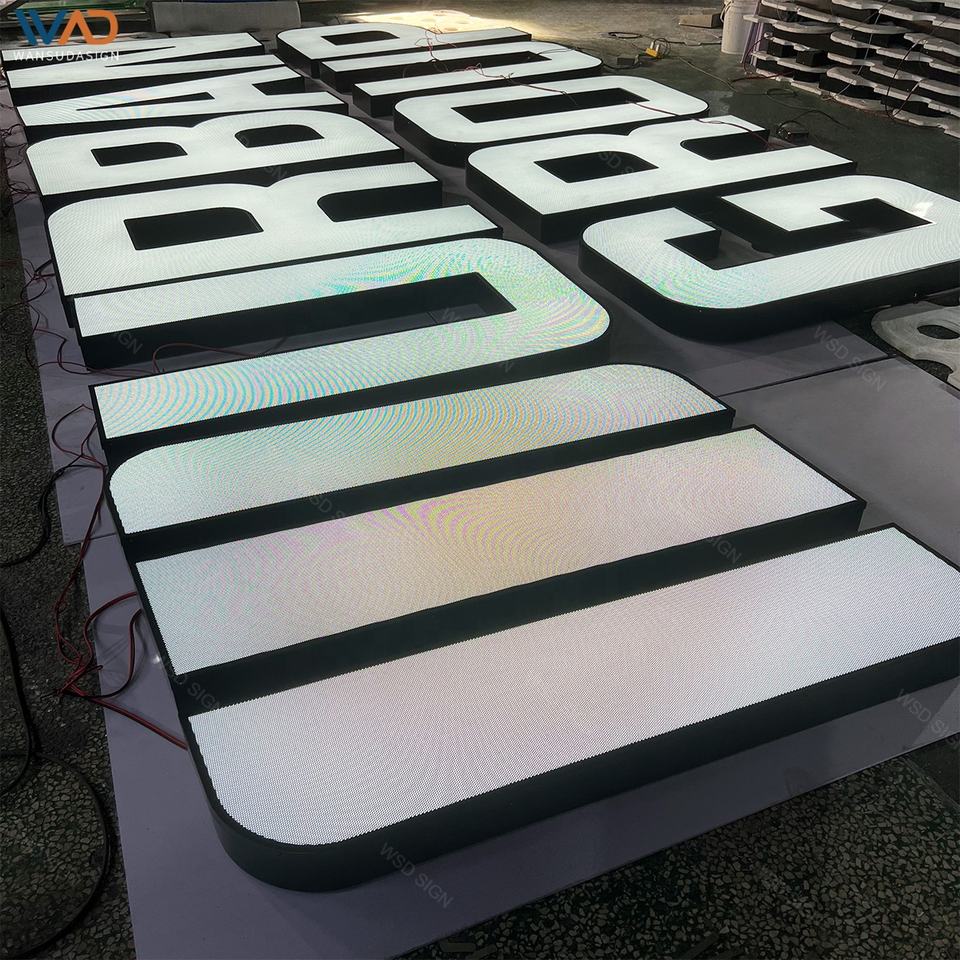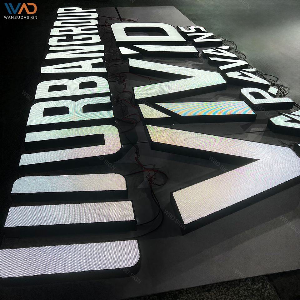 Enseigne LED lumineuse frontale vibrante pour bâtiment, lettres 3D en relief pour la décoration de hall d'hôtel de luxe et de façade de bar de boîte de nuit