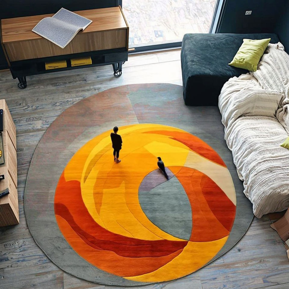 Tapis moderne tufté à la main, fait à la main, avec rapport doré vibrant, pour le salon et le bureau.