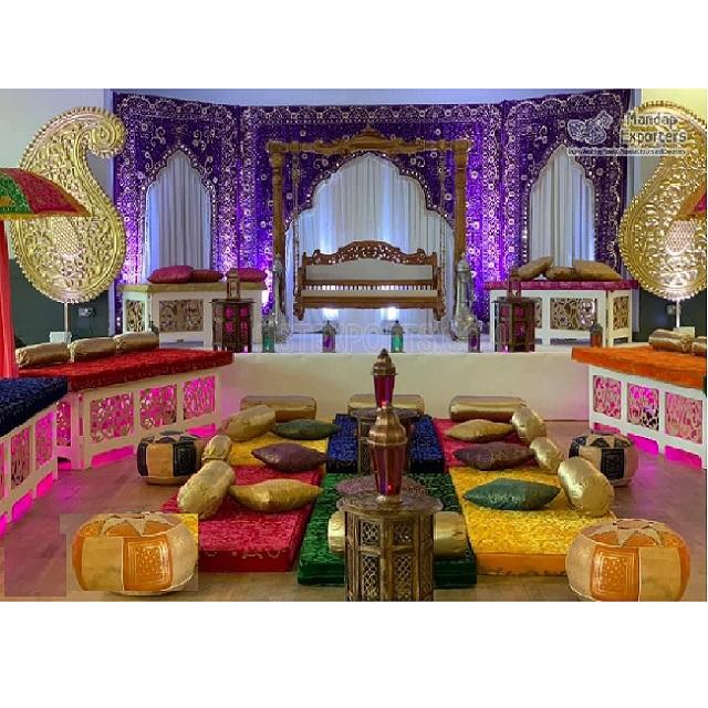 Vibrant indien Mehndi décor toile de fond rideaux Style arabe décors de mariage rideaux à vendre mariages musulmans décors vente