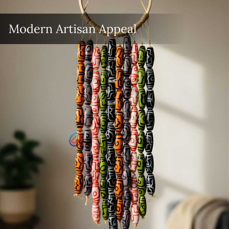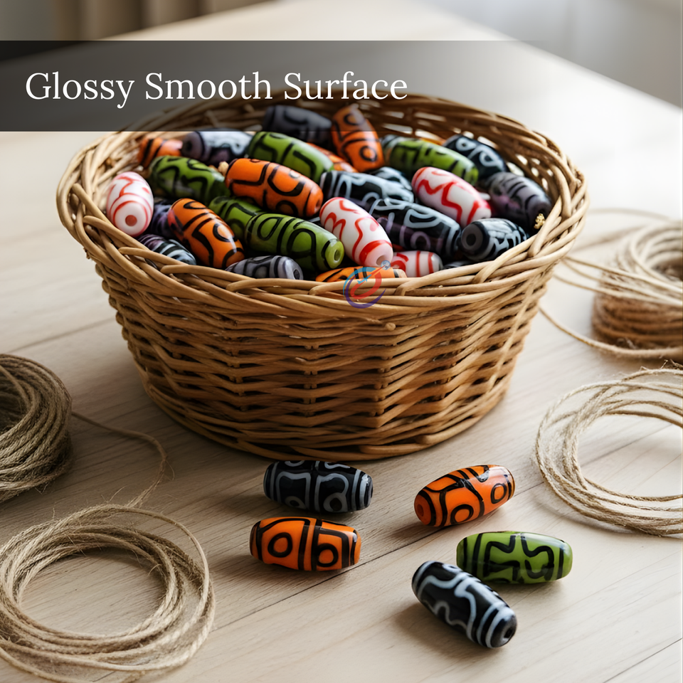 Perles ovales multicolores vibrantes en verre soufflé et tubes de verre | Collier de bijoux DIY avec motif tribal brillant 12x28mm, fournitures créatives pour l'artisanat