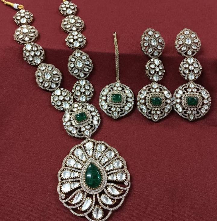 Collier Polki de créateur victorien avec boucles d'oreilles en laiton plaqué or antique pour la célébration de la fête de mariage nuptiale