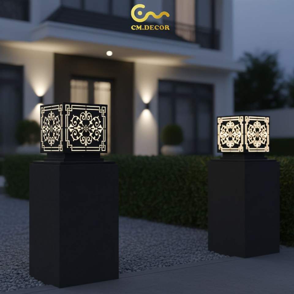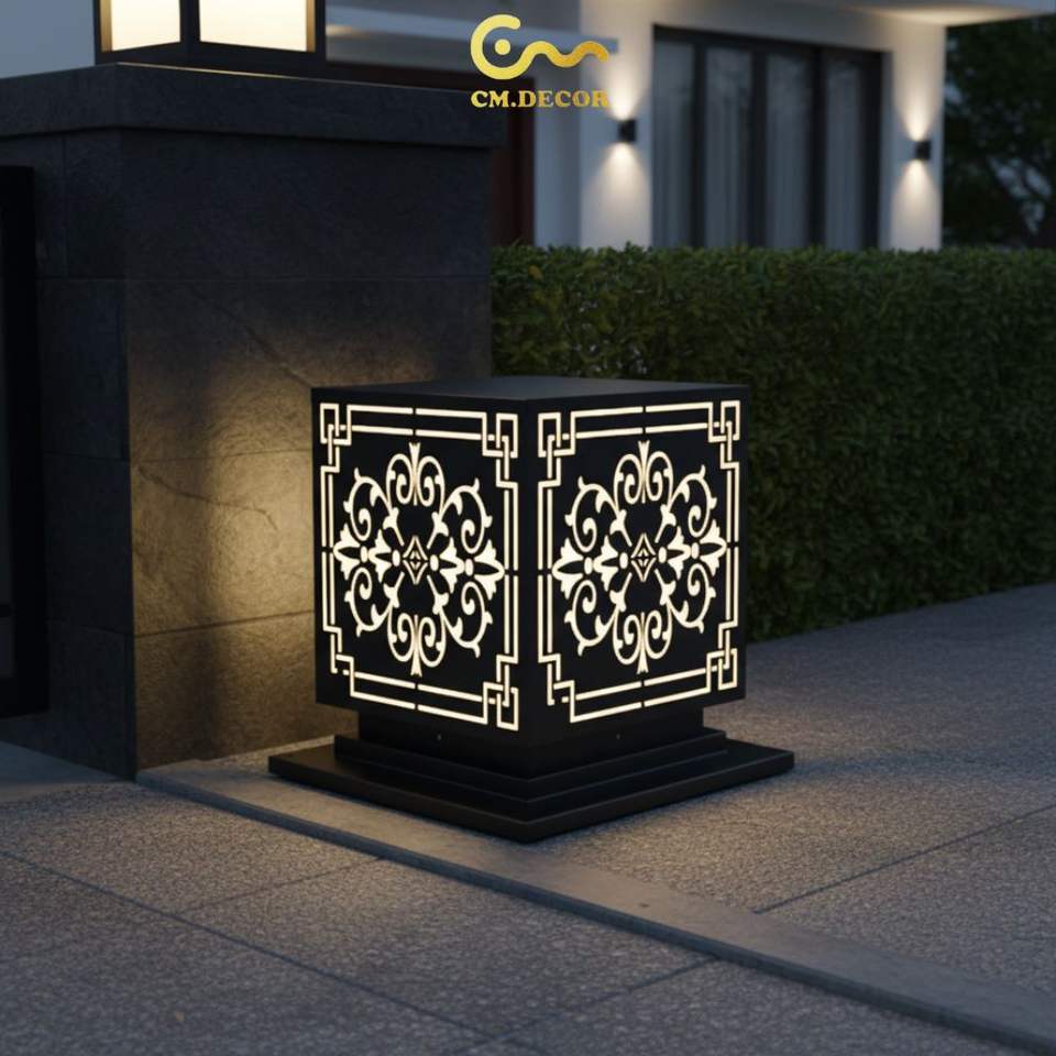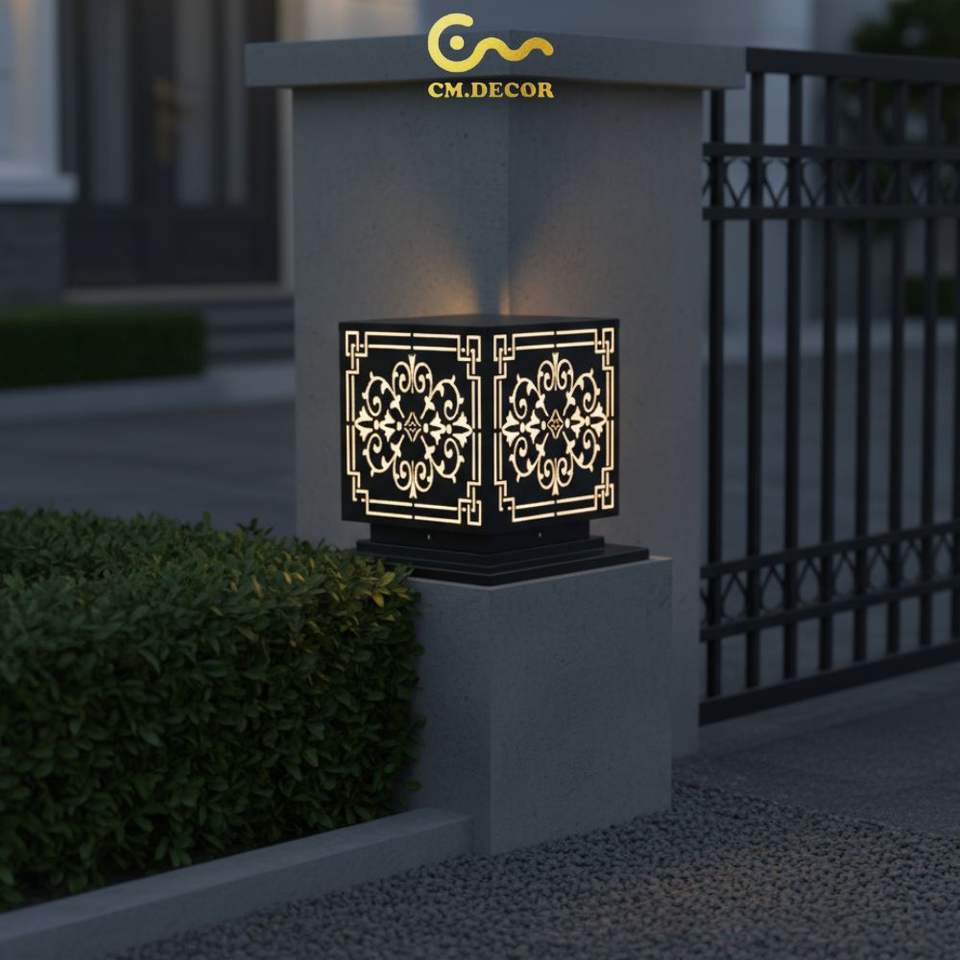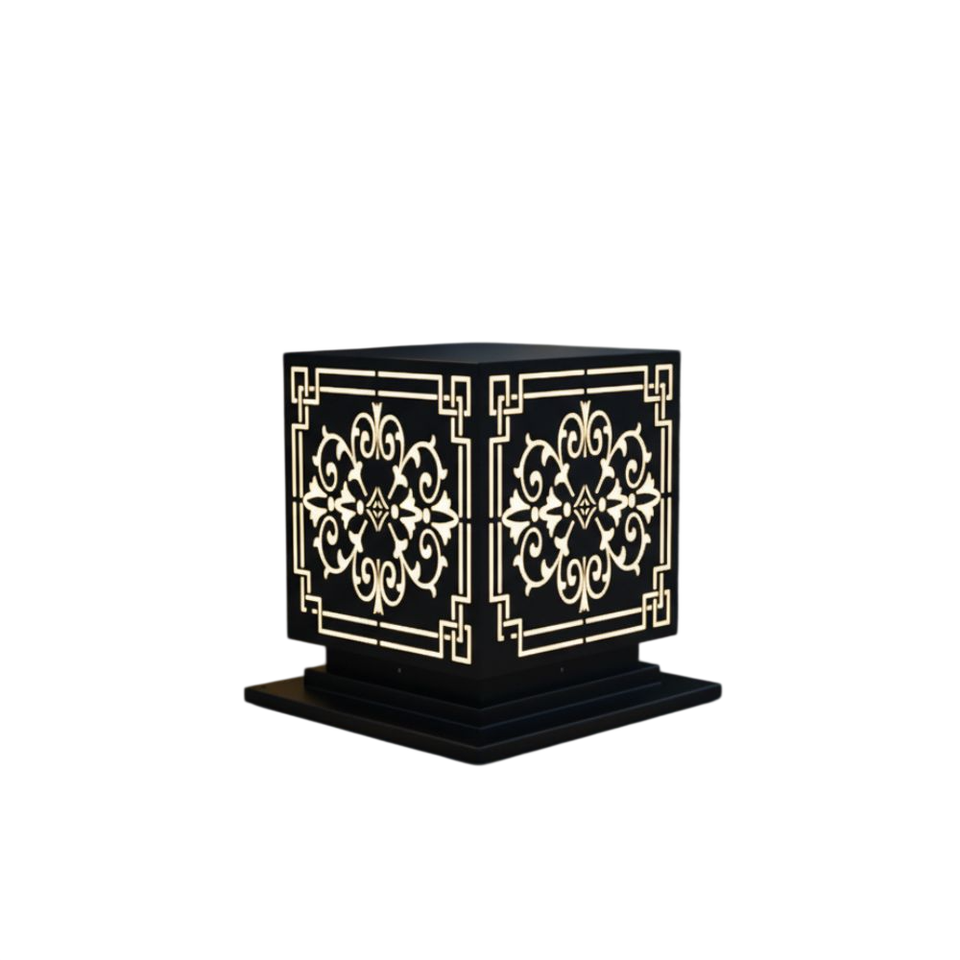 Lampe de poteau LED à motif victorien Vietnam CM Decor pour extérieur, villa, jardin, noire, E27, IP65, en métal, AC 220V (±10%)
