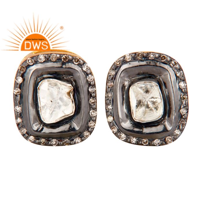 Style victorien En Or Massif et 925 Argent Boucles D'oreilles Fournisseur De Bijoux Antique Polki Diamant Boucles D'oreilles Bijoux