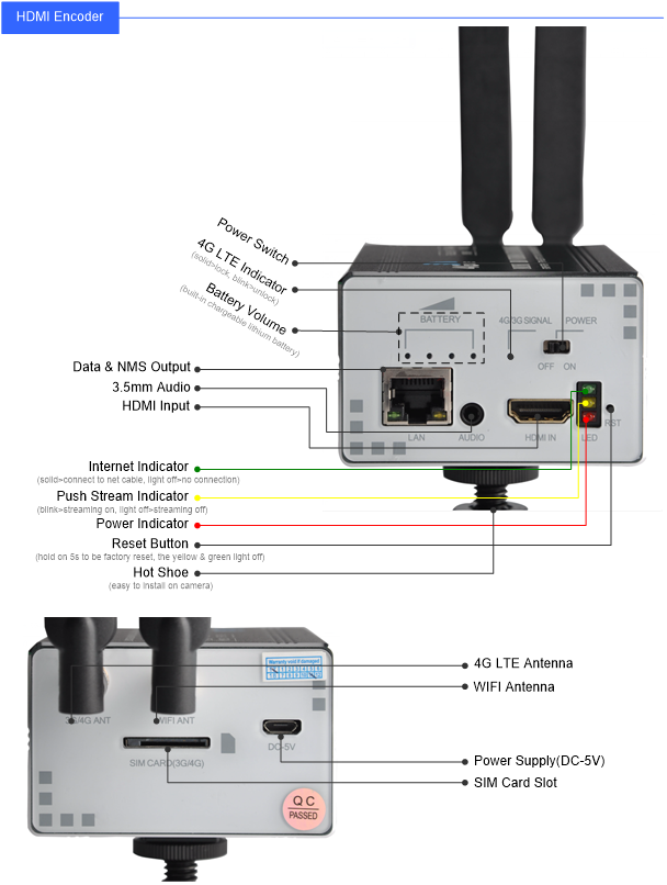 Encodeur vidéo flux H265 MINI codeur Portable à faible latence en direct 3G 4G IPTV Streaming sur 4G LTE