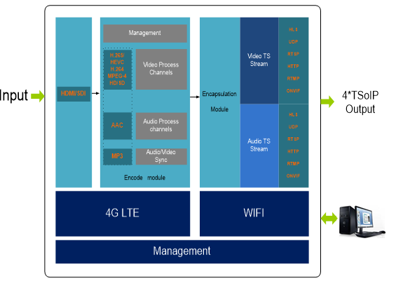 Encodeur vidéo en streaming H265 Faible latence Portable MINI Encodeur de diffusion en direct 3G 4G IPTV Streaming sur 4G LTE