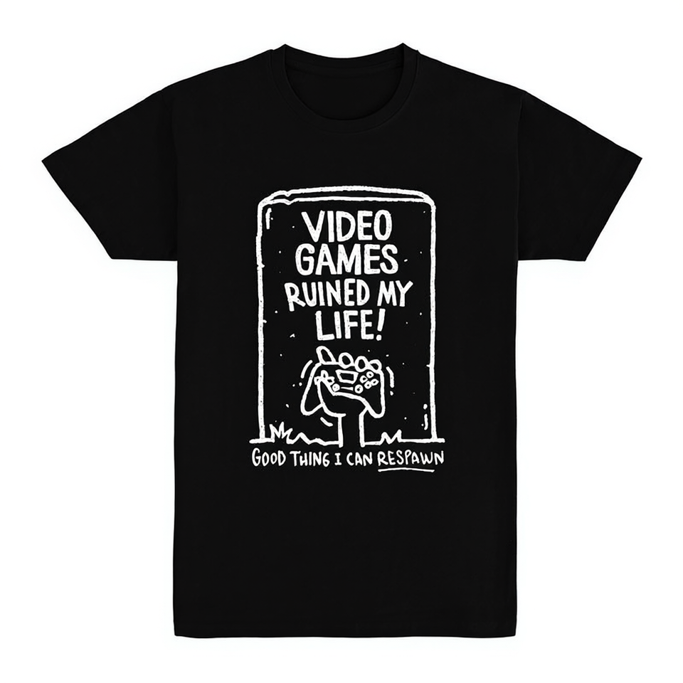 T-shirt « Video Games Ruined My Life » noir unisexe taille moyenne, t-shirt de jeu amusant