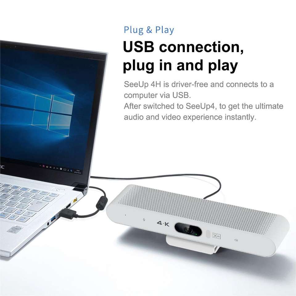 Vidéo et audio Caméra UBS 4k avec microphone et haut-parleurs intégrés lecteur gratuit pour salle de réunion blanc plug and play Web Cam