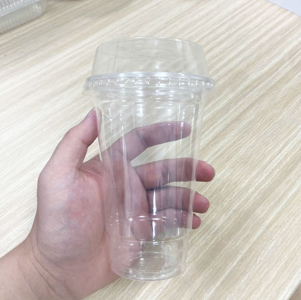 Viet Nam Manufacturer's Disposable 95mm Clear Plastic Cups with Single Wall Design Lid for Lemon Tea Dessert Other Cold Drinks