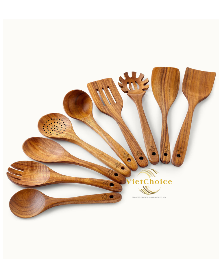 Vietchoice Teak Wood 6-Piece Kitchen Utensil Set with Long-handled Spatulas Spoons Forks-Dishwasher & Oven Safe Stove Safe