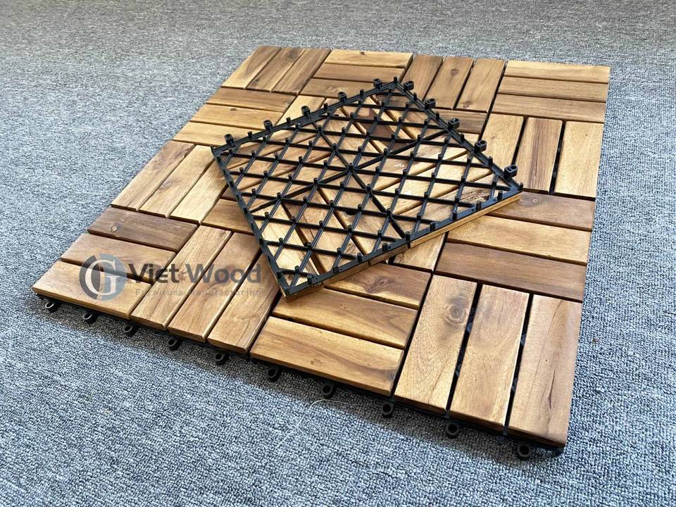Vietnam Acacia Wood Square Interlocking Anti-Slip Waterproof Contemporary Outdoor Patio & Bathroom Flooring Tiles