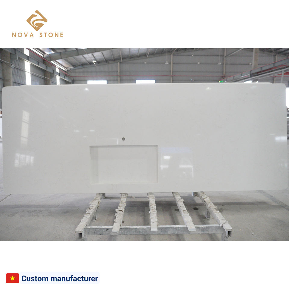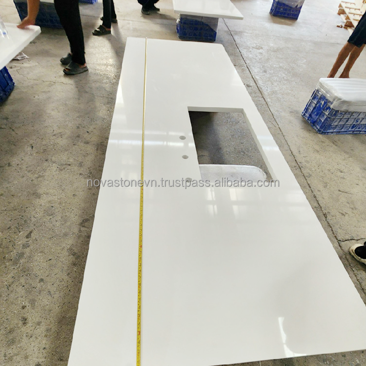 Vietnam Awesome Hygienic Bending Resistant Artificial Quartz Stone Fabricated Kitchen Cabinet Top