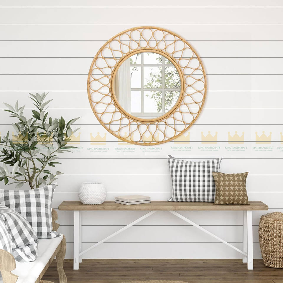 Miroir mural en osier rotin Boho du Vietnam 30 pouces, miroir rond décoratif de ferme pour foyer, salle de bain, chambre, entrée