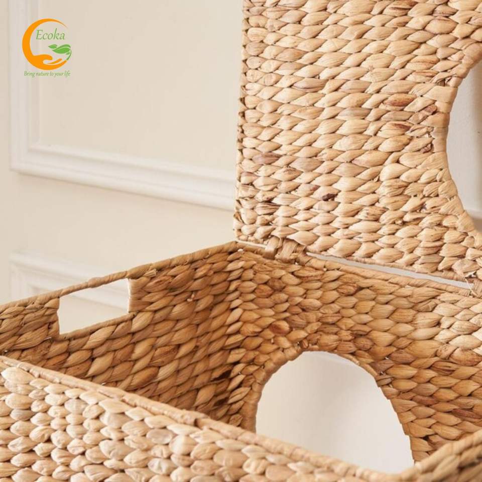 Cage pour animaux de compagnie en jacinthe d'eau naturelle, personnalisable, de luxe, classique, emballée en carton, motif uni, rectangulaire, à 2 étages, en corde, du Vietnam