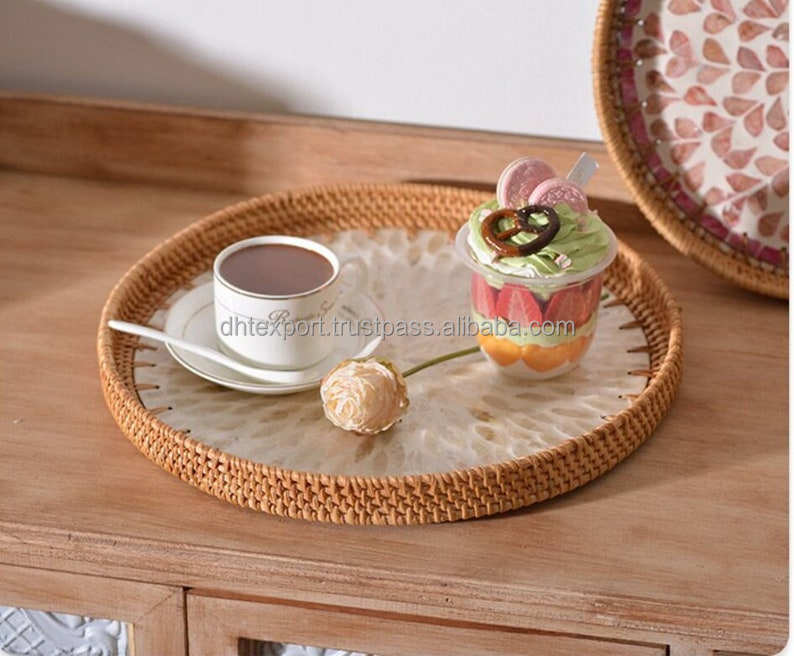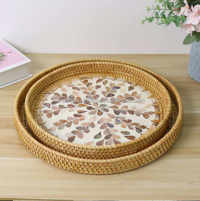 Vietnam Decorative Oval Mother Of Pearl Rattan Trays without Handles Home Decoration rattan serving tray mother of pearl