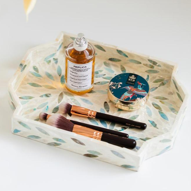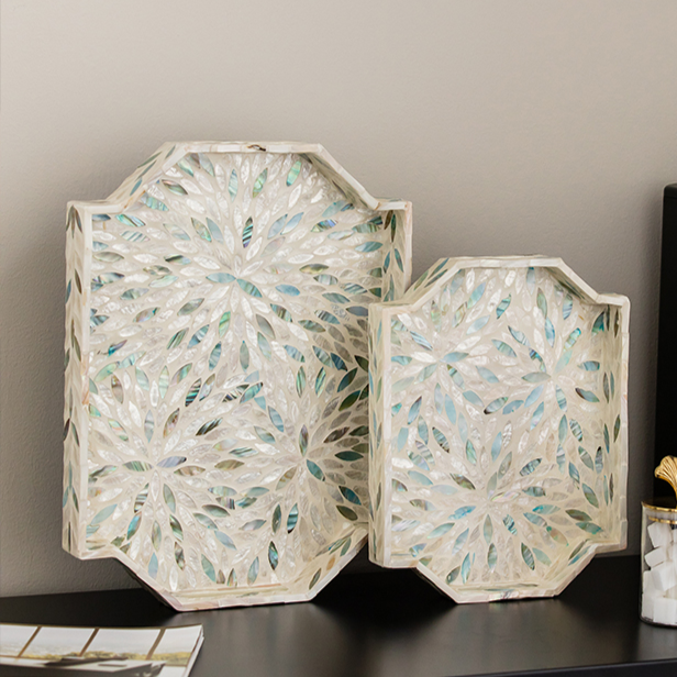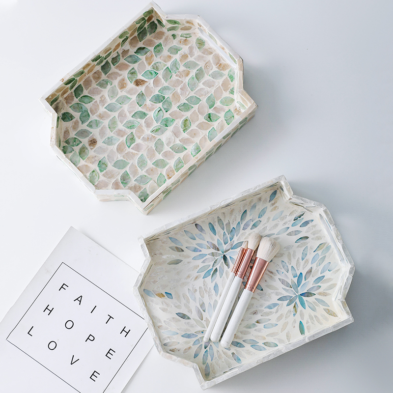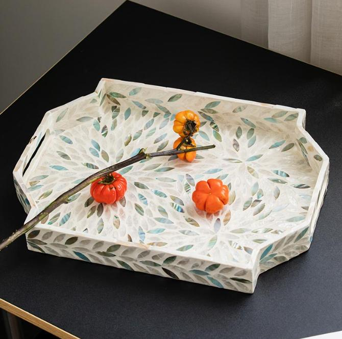 Plateau en nacre de qualité export du Vietnam, écologique, compatible lave-vaisselle, pour vaisselle, collations, usage domestique de luxe, multicolore