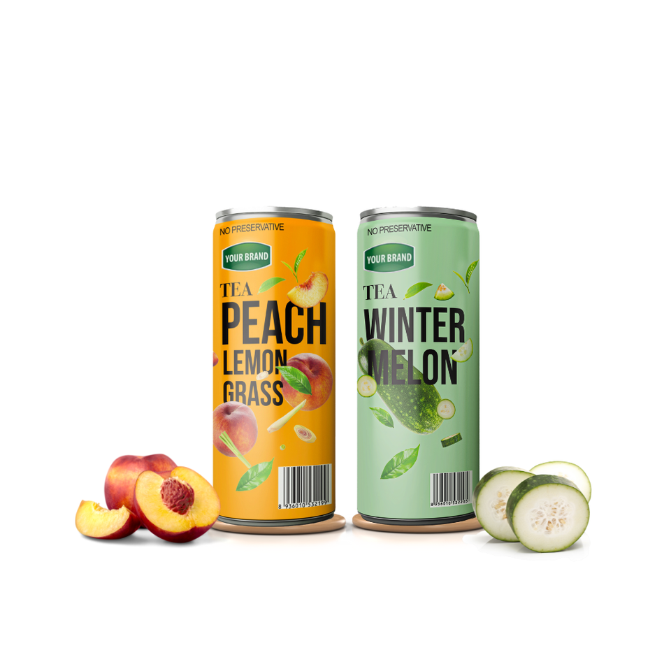 Thé prêt à boire exporté du Vietnam, thé aromatisé prêt à boire, boîte mince de 330 ml, bouteilles, thé à la saveur de pêche, citronnelle
