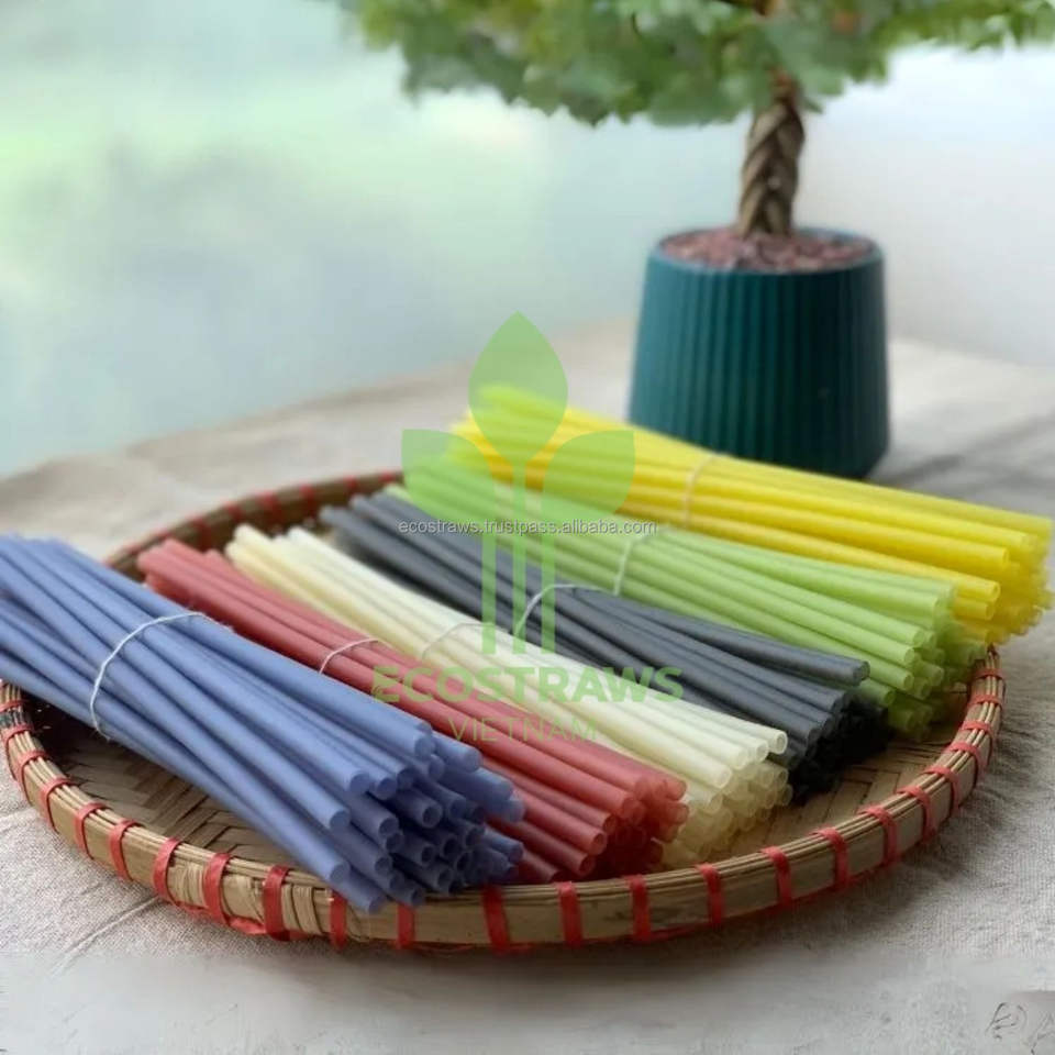 Fabrication de paille de riz comestible d'approvisionnement direct d'usine du Vietnam pour boire du thé au lait avec taille personnalisée 6/8/21 cm
