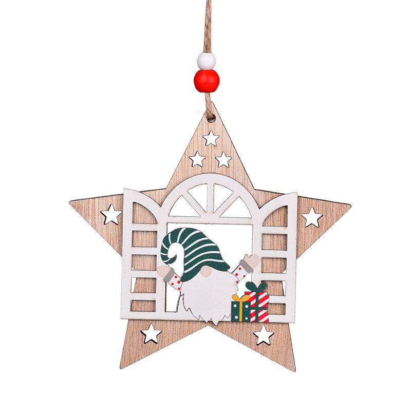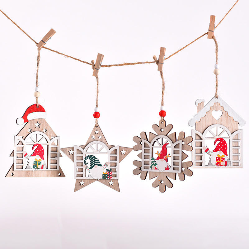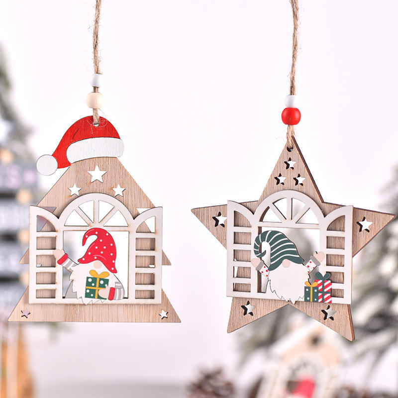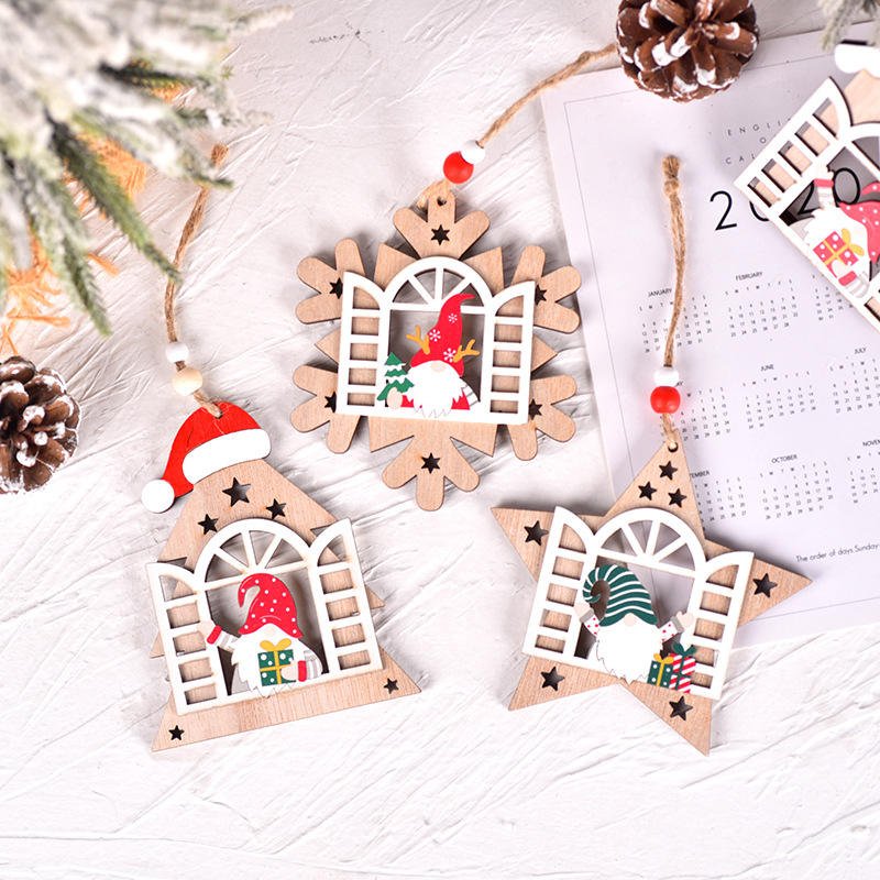 Décorations suspendues de fenêtre de gnome du Vietnam ensemble ornements de Noël en bois pour l'affichage d'arbre ou de mur