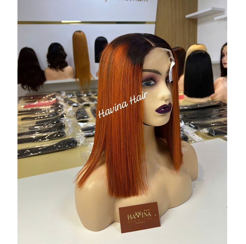 Usine de cheveux du Vietnam, perruque à dentelle frontale droite de 12 pouces, cheveux humains vietnamiens à 100%, cuticules alignées, fournisseur en gros