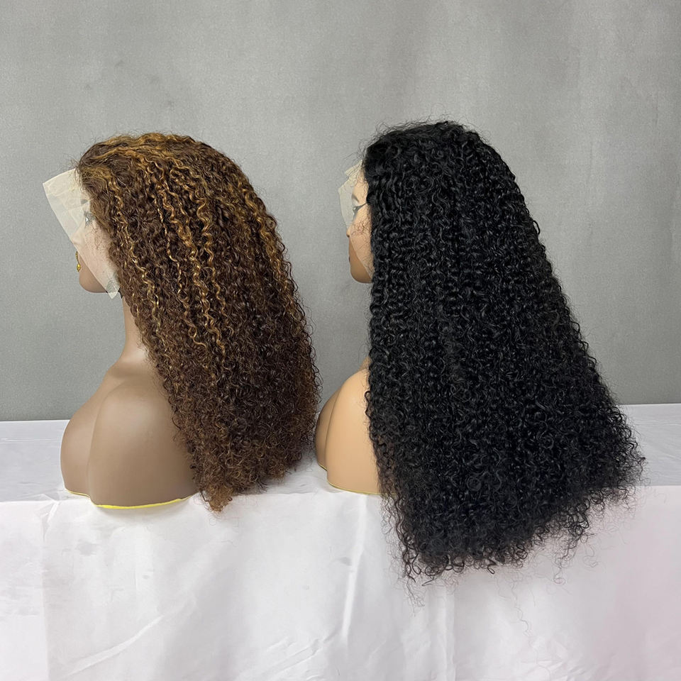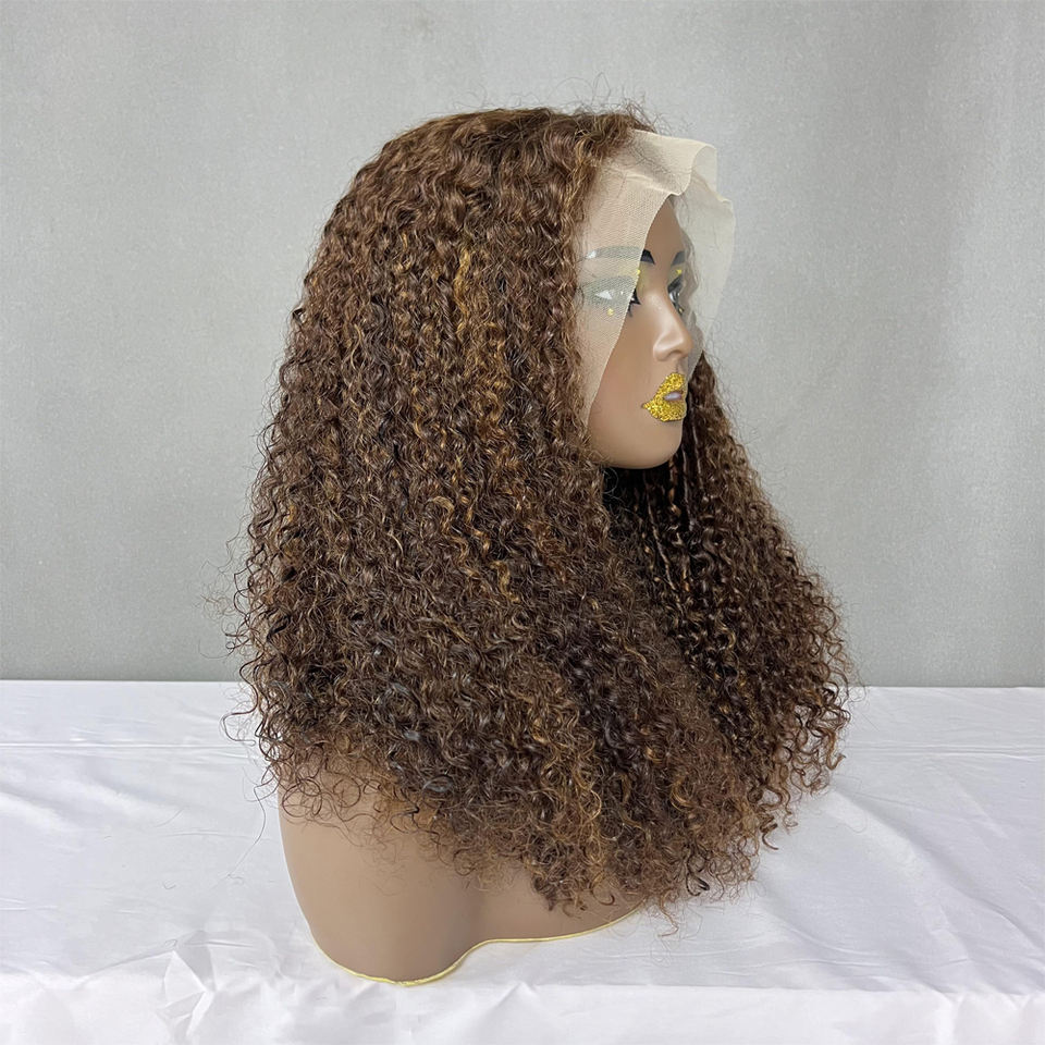 Perruques en cheveux vietnamiens, boucles pixie en cheveux humains, SDD 12 pouces à 24 pouces, couleur piano, perruque à dentelle frontale 13X4