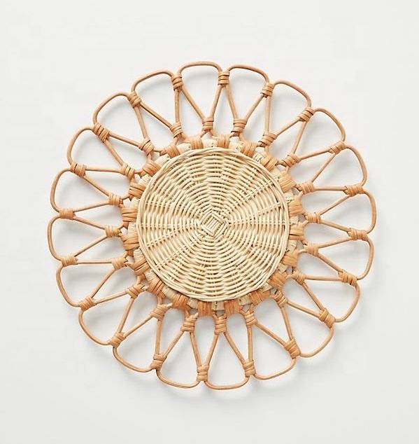 Napperon rond écologique de 8 pouces en rotin fait à la main du Vietnam pour la vaisselle de décoration intérieure