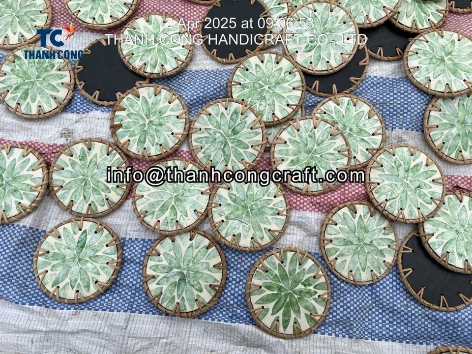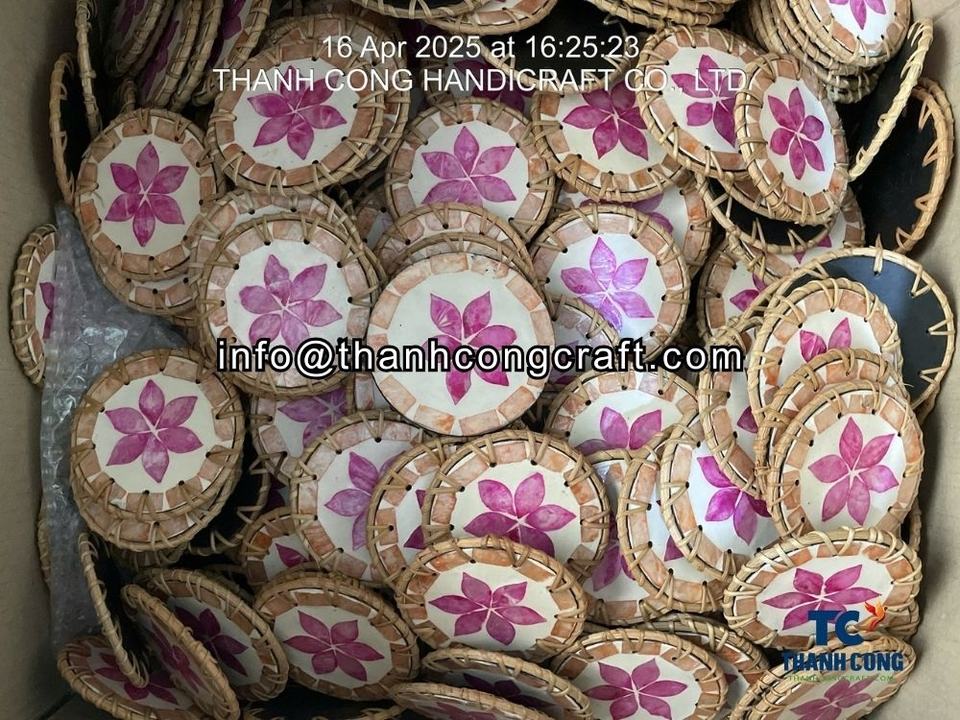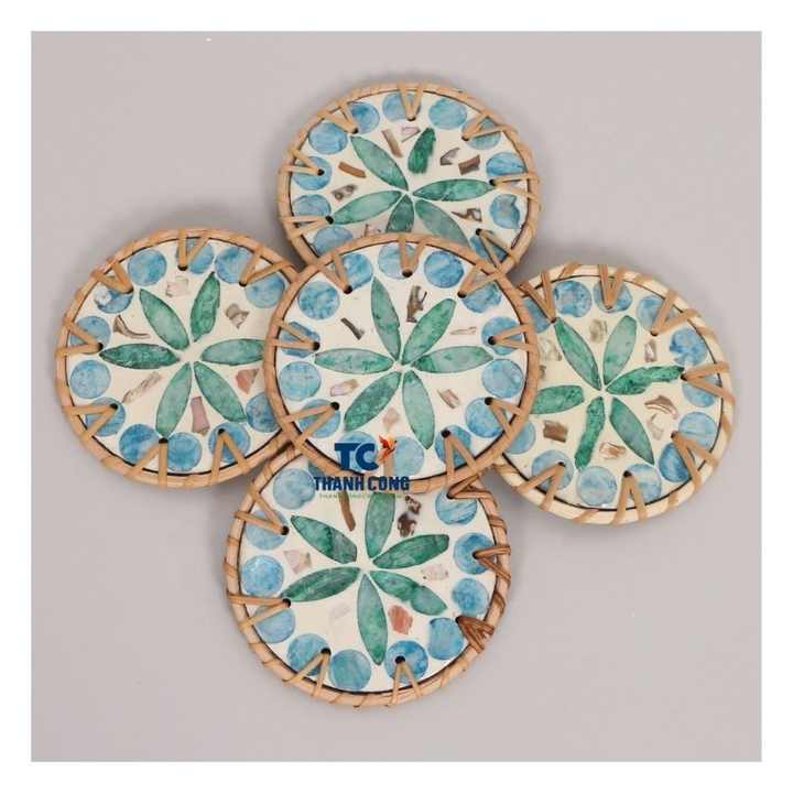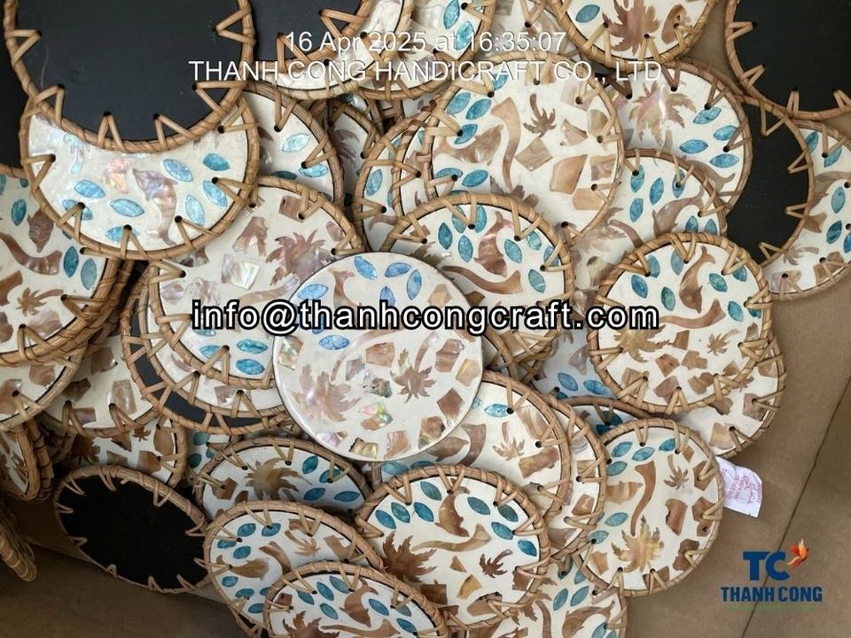 Product name:Mother of Pearl Coaster with Rattan Accents