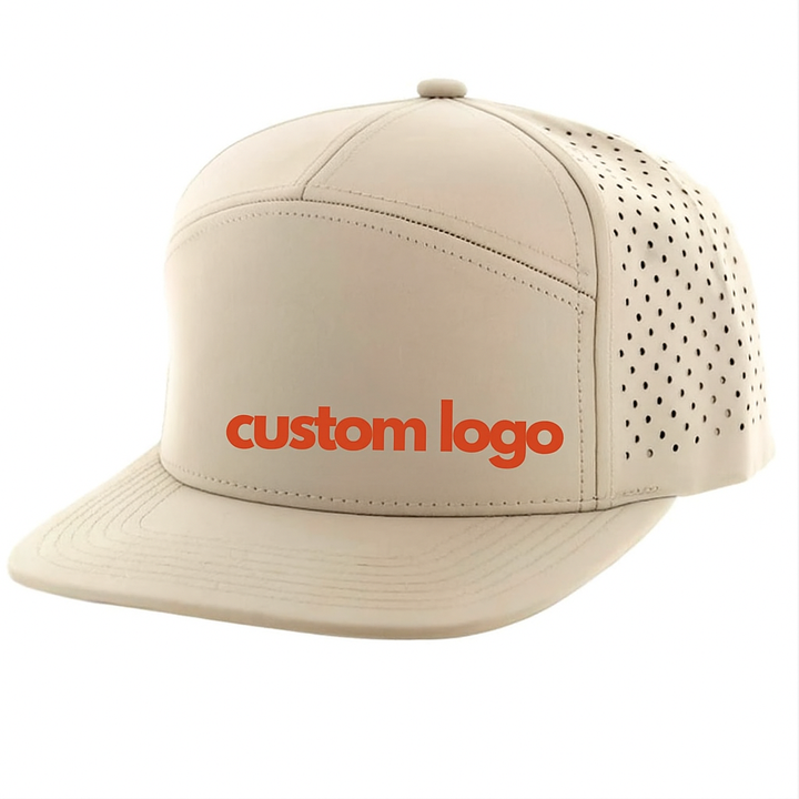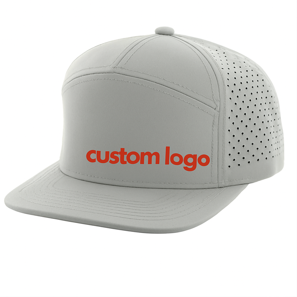 Vietnam Hat Manufacturer Cotton Fabric Custom Logo 7 Panel Polyester Mesh Baseball Hats With Laser Cut Holes Quick Dry Sport Hat