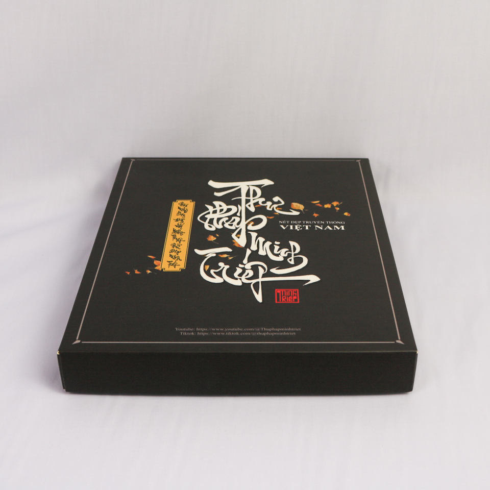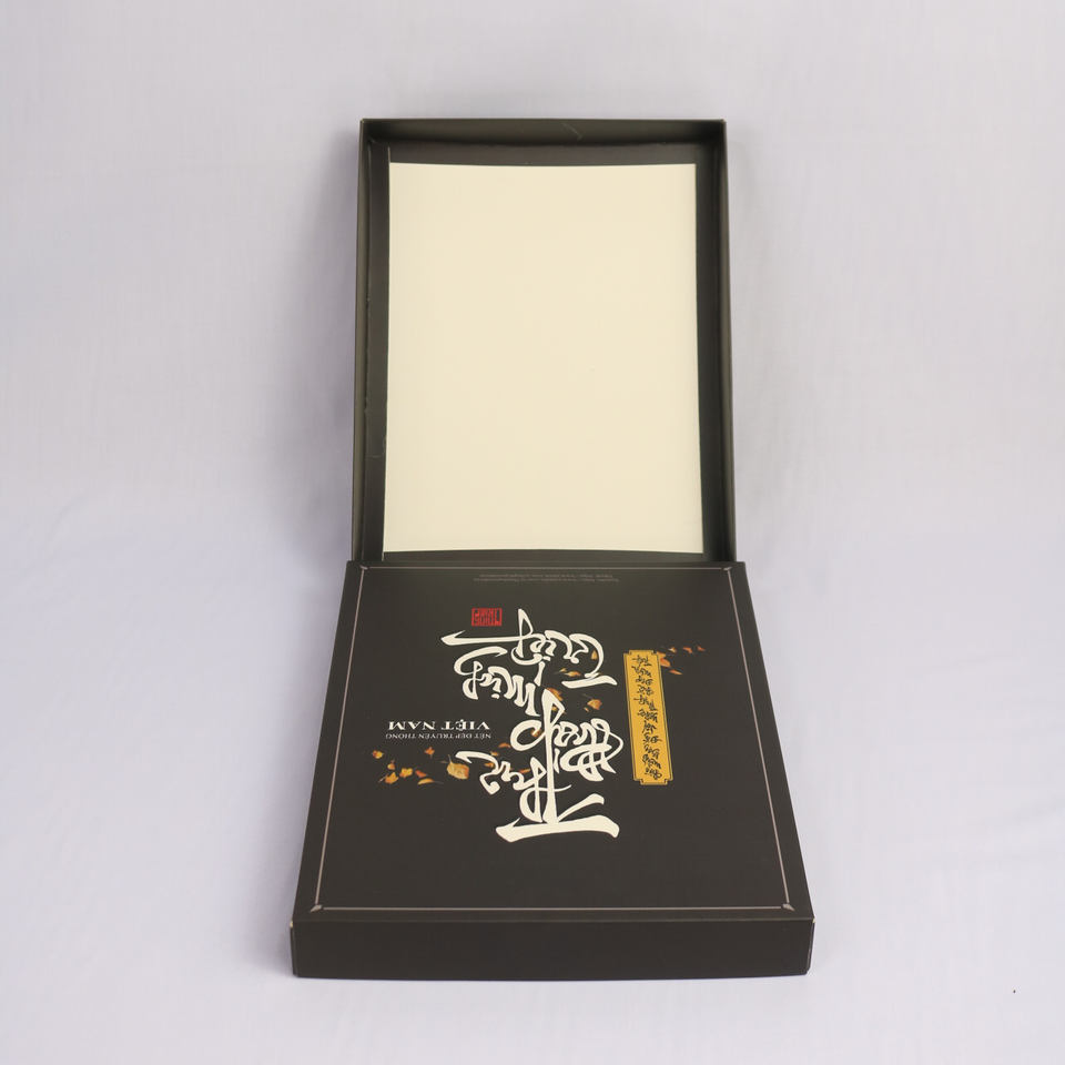Coffret cadeau de calligraphie haut de gamme du Vietnam, couvercle et fond en carton ivoire avec marque personnalisée