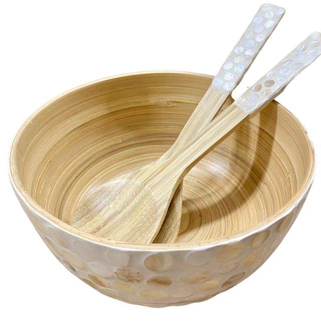 Product name:Spun bamboo MOP inlay salad bowl with servers