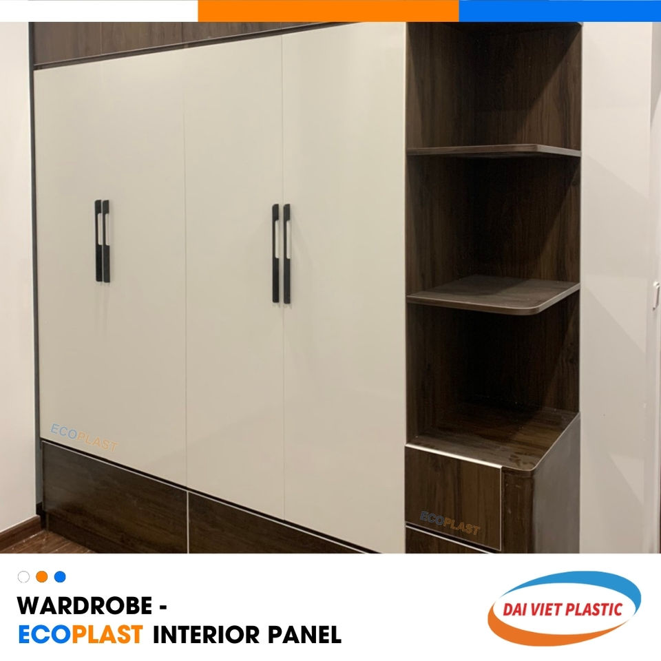 Vietnam Leading Manufacturing Factory's Elegant Modern PVC Interior Panel Glossy Closet Wardrobes Plastic Furniture Bedroom