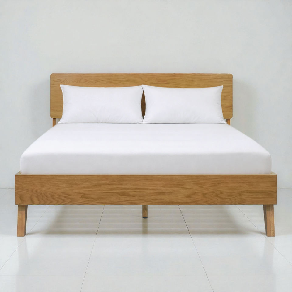 Vietnam-Made B2B Solid Oak Wood Bed Frame Eco-Friendly Bedroom Furniture Queen Size Bed Custom Color & Dimensions Flexible MOQ