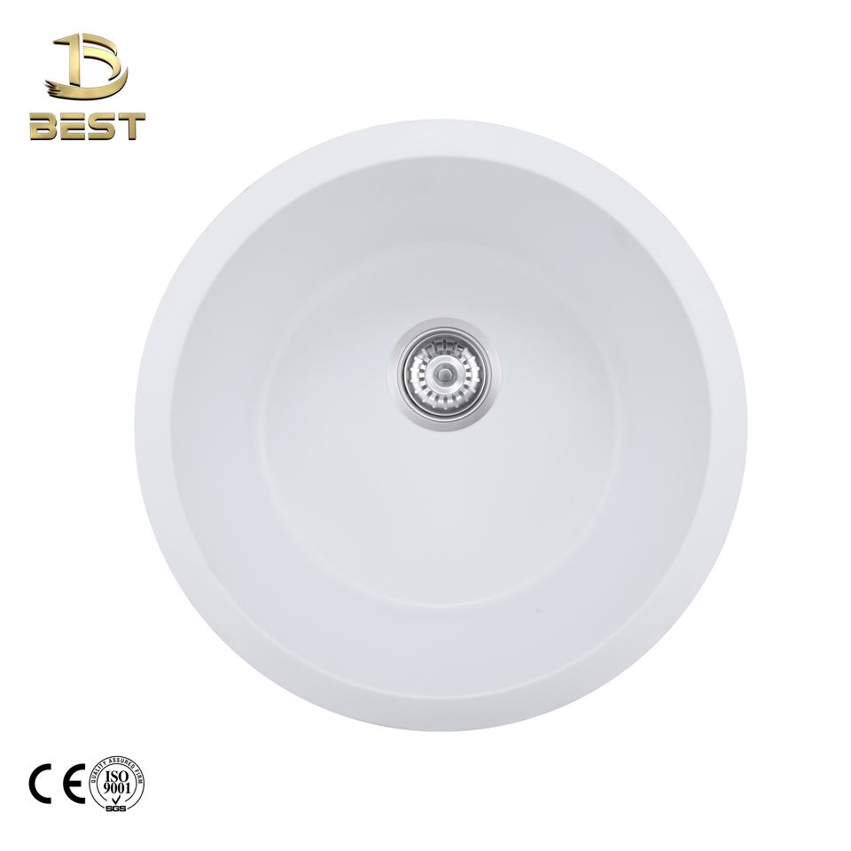 Vietnam-Made Black Quartz Circle Single Bowl Kitchen Sink with Drainer and Faucet Dual Style