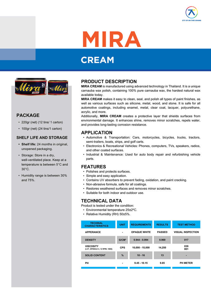 Vietnam Made Mira Professional Grade Car Interior Cream Coating & Paint for Stain Removal Surface Cleaning and Renovation