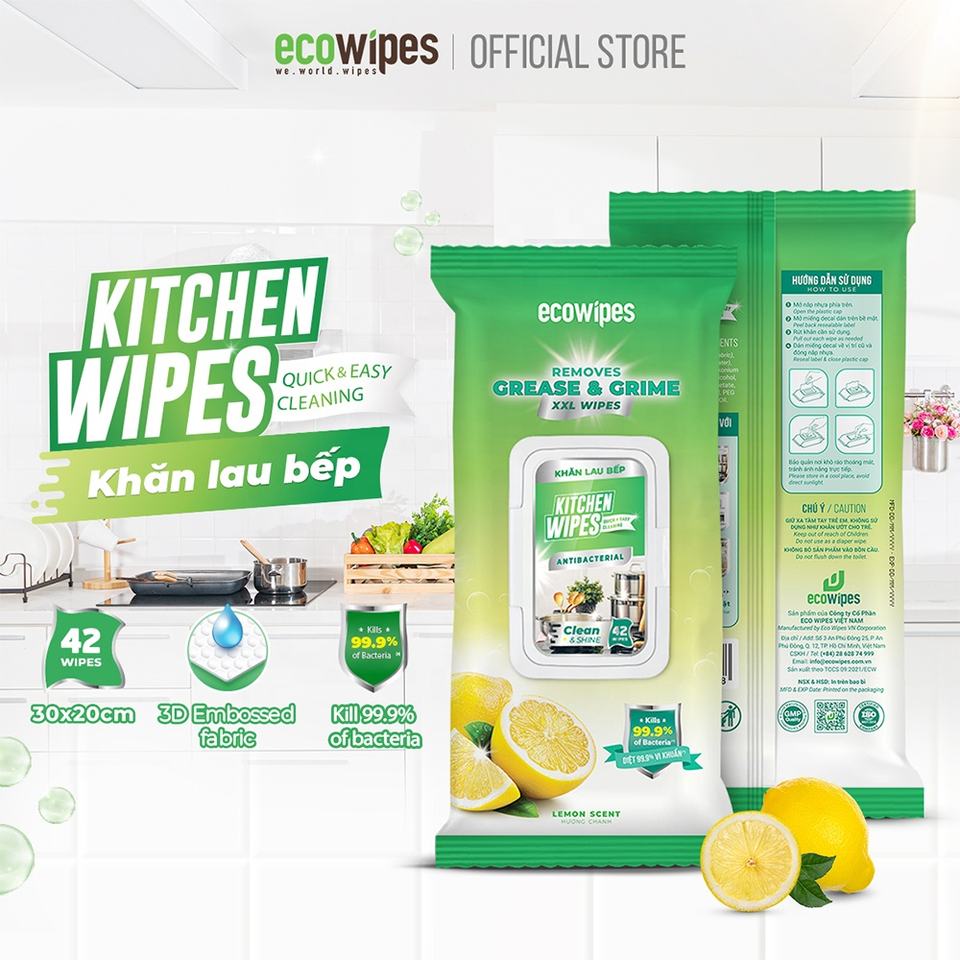 Vietnam Manufacturer Antiseptic Spunlace Baby Wipes for Kitchen Cleaning Remove Oil & Odor
