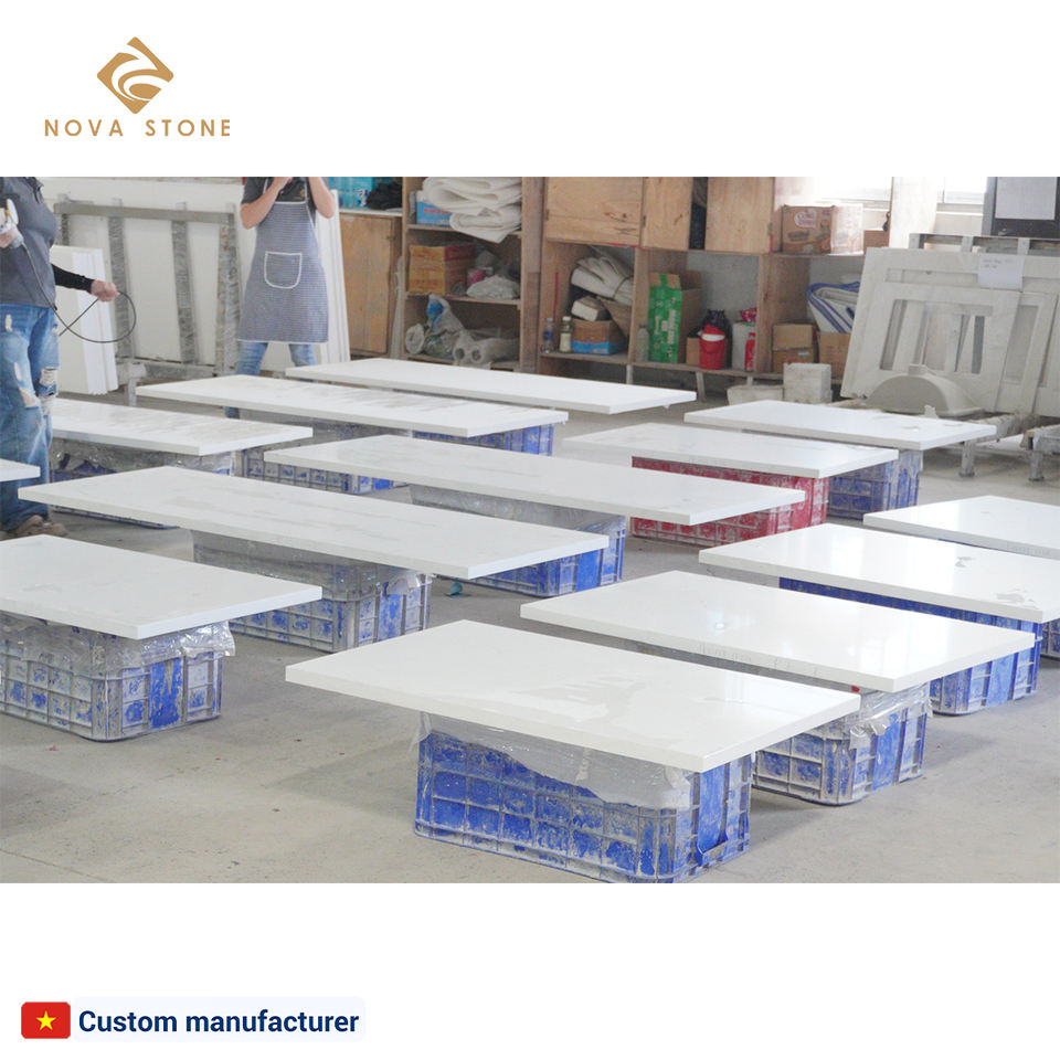 Vietnam Manufacturer Elegance Buffing Ample Space Residential Project Apartment Artificial Quartz Stone Kitchen Countertop