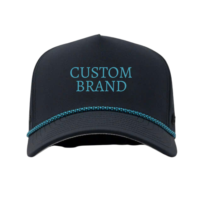 Vietnam Manufacturer Waterproof 5 Panel Baseball Cap With Custom Rubber Patch Logo Golf Sport Caps For Men Rope Laser Cut Hole