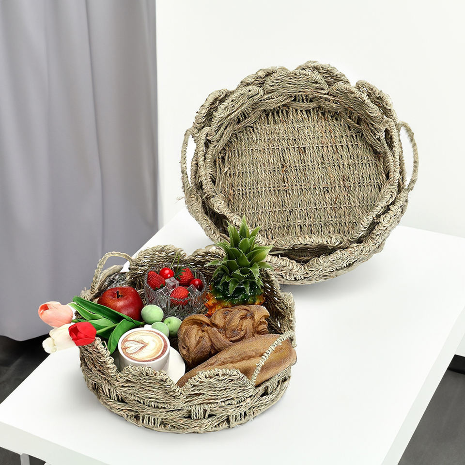 Plateaux ronds en bambou faits à la main du Vietnam plateau de service décoratif à motif géométrique écologique finition polie pour les Use-SR2024 d'hôtel