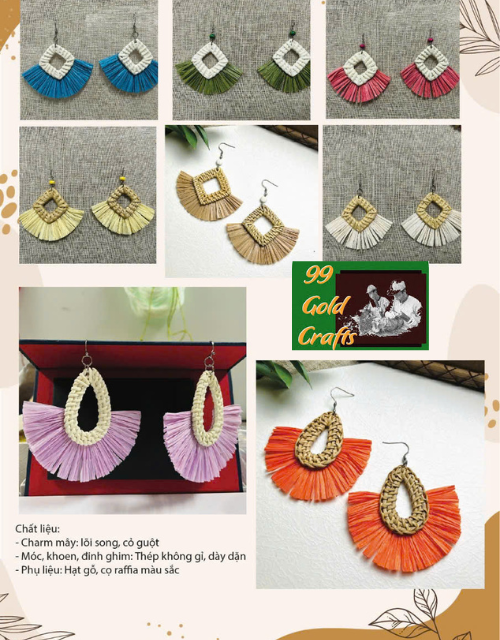 Accessoires Premium du Vietnam - Boucles d'Oreilles en Rotin Naturel Fait Main pour un Style Bohème et Estival - Boucles d'Oreilles en Rotin