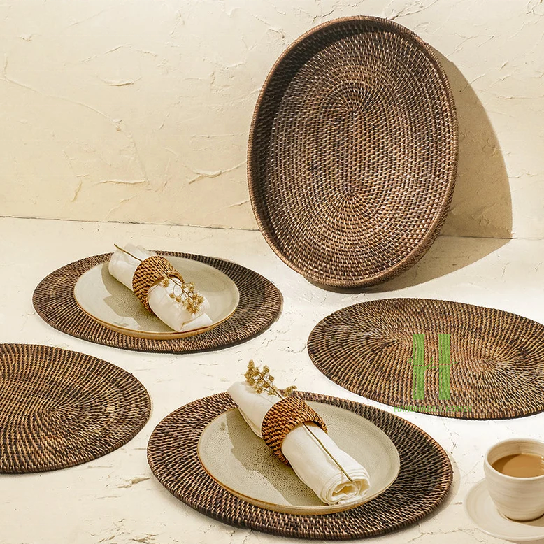 Assiette de chargeur ronde en rotin du Vietnam Assiette de chargeur en osier Boho Napperon en rotin personnalisé avec variété de couleurs de HNH Craft
