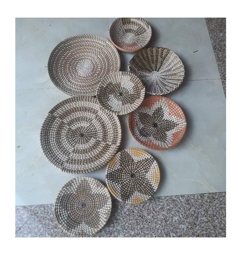 Vietnam rustique jonc de mer plaque murale grand bol tissé léger pour la décoration de la maison et de la cuisine artisanat suspendu intérieur