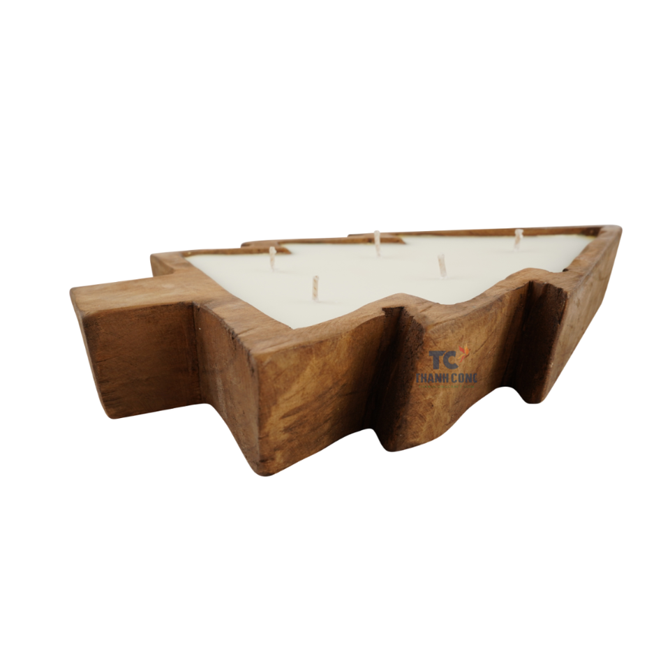Vietnam Supplier Christmas Tree Wooden Dough Bowl Candles Farmhouse Table Soy Boat Candle Bowl Unscented