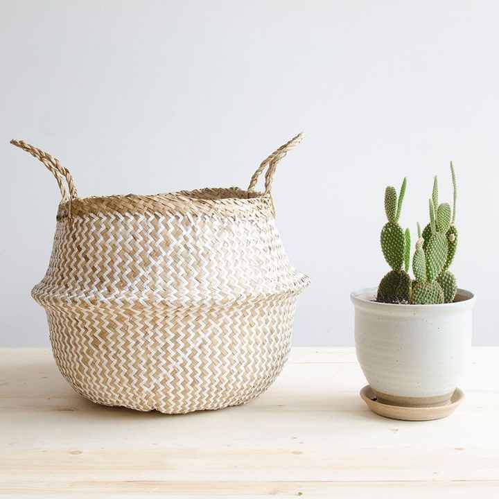 Vietnam Top Supplier Handmade Woven Belly Basket 100% Eco-friendly Seagrass Storage Planter Foldable Baskets