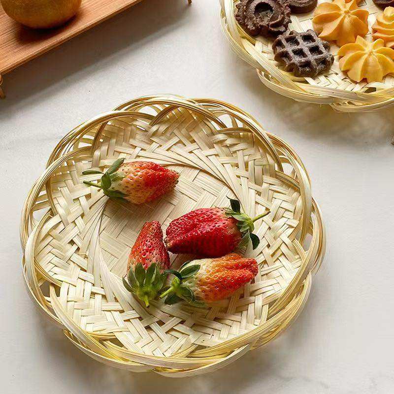 Vietnam Traditional Handmade Round Rattan Wicker Serving Basket & Tray for Catering Restaurant Home Kitchen Decor