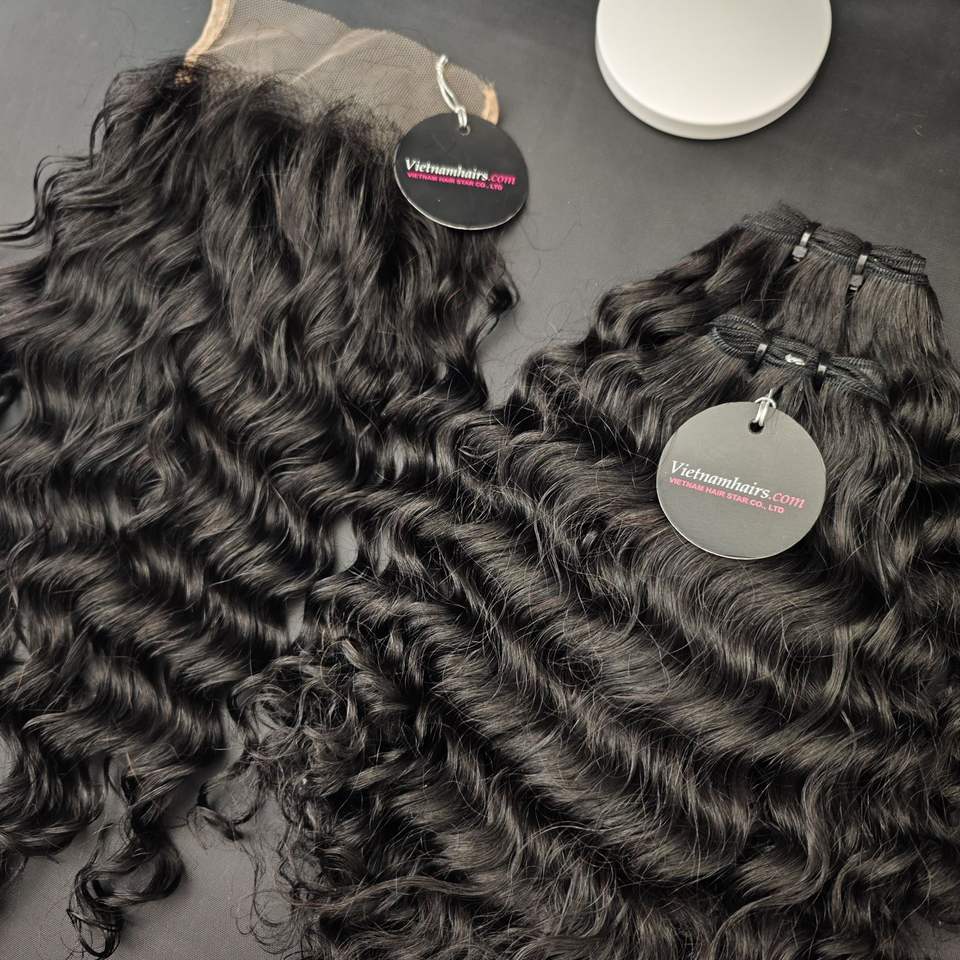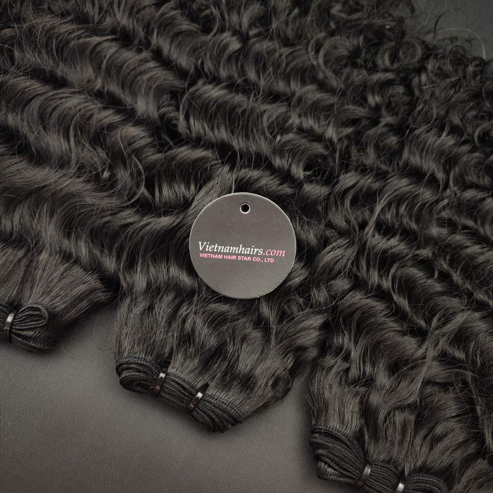 Cheveux humains bouclés vierges Remy du Vietnam, double trame machine, couleur naturelle, qualité supérieure, export en vrac pour extensions capillaires